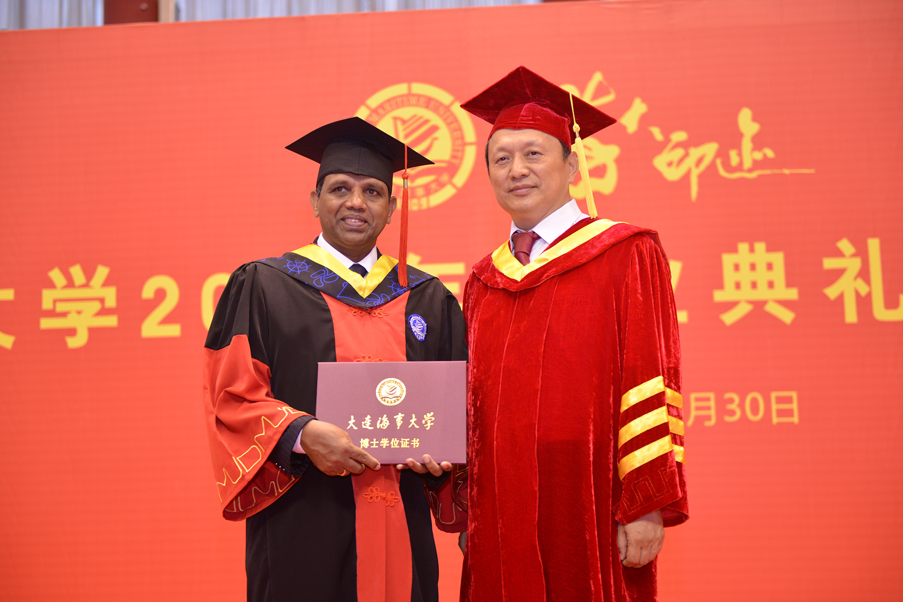 6月30日上午,大连海事大学“海大•印迹”—2017年毕业典礼暨学位授予仪式在体育馆隆重举行。校领导孙玉清、许民强、李信标、潘新祥、赵友涛,学校学位评定委员会成员、教师代表、校友代表、2017届毕业生以及毕业生家长共同出席了毕业典礼。